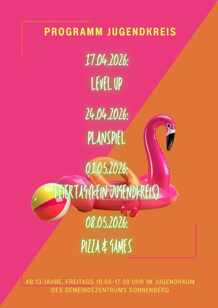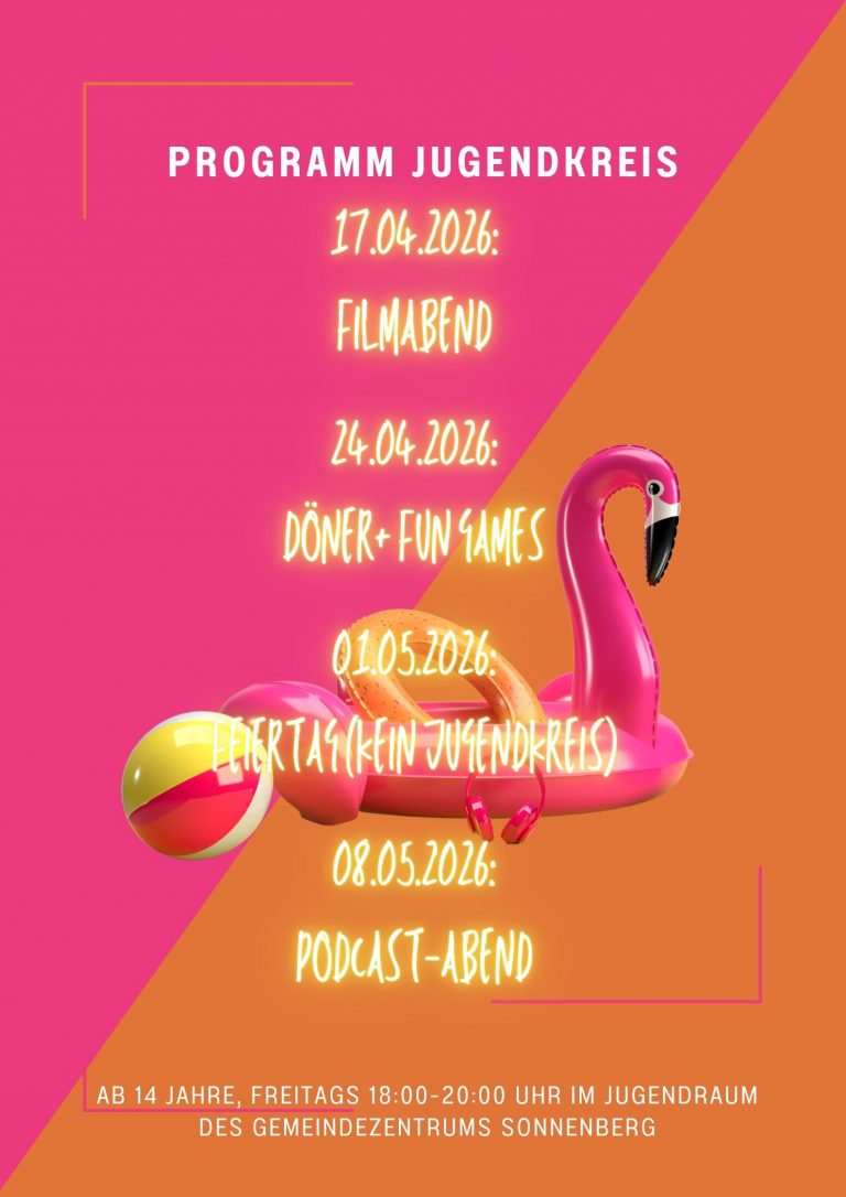 Im Jugendkreis gibt es ein wöchentlich wechselndes Programm wie: Quizabend, Dinner in the Dark, Themen-Abende, kochen und backen
